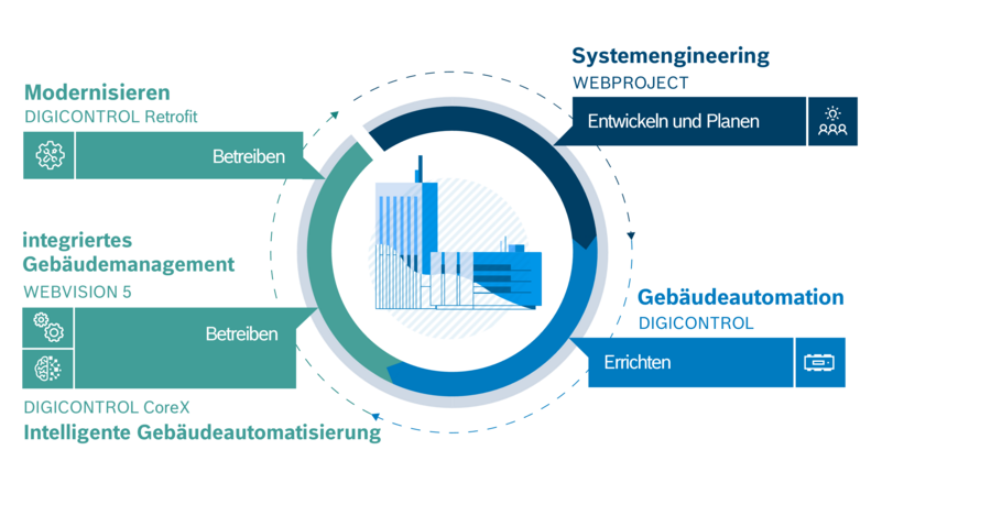 100 % durchgängige Gebäudeautomationslösungen – über den gesamten Gebäudelebenszyklus
