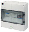 Small plastic distribution boards for hollow wall installation in accordance with DIN VDE 0603/1 and DIN 43 871. For installing devices up to 63 A with 70 mm installation depths in compliance with measurement standard DIN 43 880, measurement voltage 400 V/50 Hz, protection class IP30, degree of protection class II insulated.