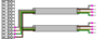 The cable ems2.VK10 is used as connection cable for the MultiLink (CAN bus) for a multiple-row system of emsX modules (H connectors) within a control cabinet field and as connection cable between emsX modules in two control cabinets in series.