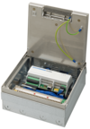 Terminal board, manufactured using 1mm galvanised steel plate, tight-fitting M25 cable entry grommets with puncture membrane, cover with quick release fastener, protection class IP40.