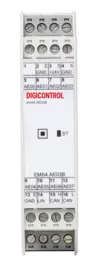 The ems4.AE03B is a module for recording temperatures of the resistance thermometer PT/NI/CU 1000 with an integrated microcontroller and memory module for accommodating a specially coordinated programme. Two measuring ranges are available for temperature measurement, which cover different temperature ranges depending on the sensor type. The respective input signal type (PT/NI/CU 1000 / 0(2)...10 VDC / 0(4)...20 ma) and the measuring range required (for temperature measurements) are configured separately for each input using the configuration tool. The transmission frequency of the module and attenuation of the input signal can be parameterised via one hysteresis value and on filter constant per input.