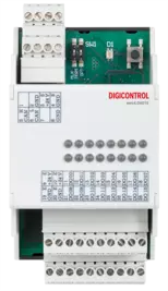 The DA01E module enables the switching of 1...16 digital outputs (transistor outputs). A common status signal is provided for each two outputs, which can be used to detect a short circuit at the output, for example. Each output of the ems4.DA01E has special protection mechanisms: