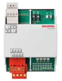 The digital output module ems4.DA02E serves as an extension module for automation equipment in the DIGICONTROL ems series. It has 4 relay outputs for maximum 230 V AC, 6 A (AC1), 2 A (AC1).