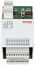 The ems4.ME01E has 10 multifunctional inputs which can be used as digital, analogue and temperature sensor input. Temperature sensors of type PT1000, NI1000 (DIN) or NI1000 (TKR5000) can be connected. The analogue (0...10V) signal can be scaled. If the input is used as digital input, it can be differentiated between a switching signal (ON/OFF) and a pushbutton. The digital signal is debounced by means of an adjustable time (identification time) which can be set via the module parameters. There is the additional option to directly control a digital output module (DA0xB). The module automatically detects the speed of the connected CAN bus system.