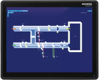 10.1 inch display for convenient operation of automation stations, based on an HTML5-capable embedded web server. An integral component is the ability to independently perform all operating and monitoring functions via the embedded web server with “onboard MCE” functions contained in the automation stations. Furthermore, the web touch panel is used for the graphical display of plant diagrams wiht dynamic overlays. The WEBtouch panel is supported by the automation station type ems5.CP05E or ems2.CP14D as well as ems2.R4D1B.
