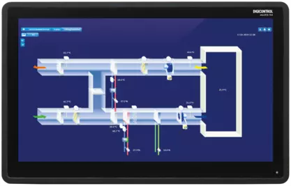 15,6 Zoll Display zur komfortablen Bedienung von Automationsstationen, basierend auf einem HTML5-fähigen embedded Webserver. Integraler Bestandteil ist es, eigenständig über den in den Automationsstationen enthaltenen embedded Webserver mit „Onboard-MBE“ – Funktionen sämtliche Bedien- und Überwachungsfunktionen durchzuführen. Weiterhin dient das WEB-Touchpanel zur grafischen Darstellung von Anlagenschemata mit dynamischen Einblendungen. Das WEB-Touchpanel wird von den Automationseinrichtungen des Typs ems5.CP05E oder ems2.CP14D sowie ems2.R4D1B unterstützt.