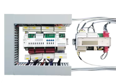 Betreiber von DIGICONTROL ecs3 Automationssystemen werden durch das DIGICONTROL Retrokit ems2.RTR-ECS-G in die Lage versetzt, ihre ecs3 Automationsstationen (AS) im Bestand gegen AS der neuesten DIGICONTROL-Generation austauschen zu lassen. Dieses kann kostengünstig und schnell, im laufenden Gebäudebetrieb erfolgen. Der Einsatz des Retrokits bietet sich an, wenn neue Anforderungen (z.B. Ethernet-Anbindung, grafischer Websever, BACnet, Fernwarten und - bedienen) an die Automationsstation gestellt werden, welche die eine ecs3 Automationsstation nicht erfüllen kann. Weiterhin stellt der Einsatz des Retrokits, bei einem Defekt einer Bestandsanlage mit ecs3- Automationsstation, eine wirtschaftliche Alternative zum Neubau dar. Der Anschluss der Original-ecs3-Stecker erfolgt in vorbereitete Stecker Adapter des Retrokits. Somit entsteht keinerlei Verdrahtungsaufwand.