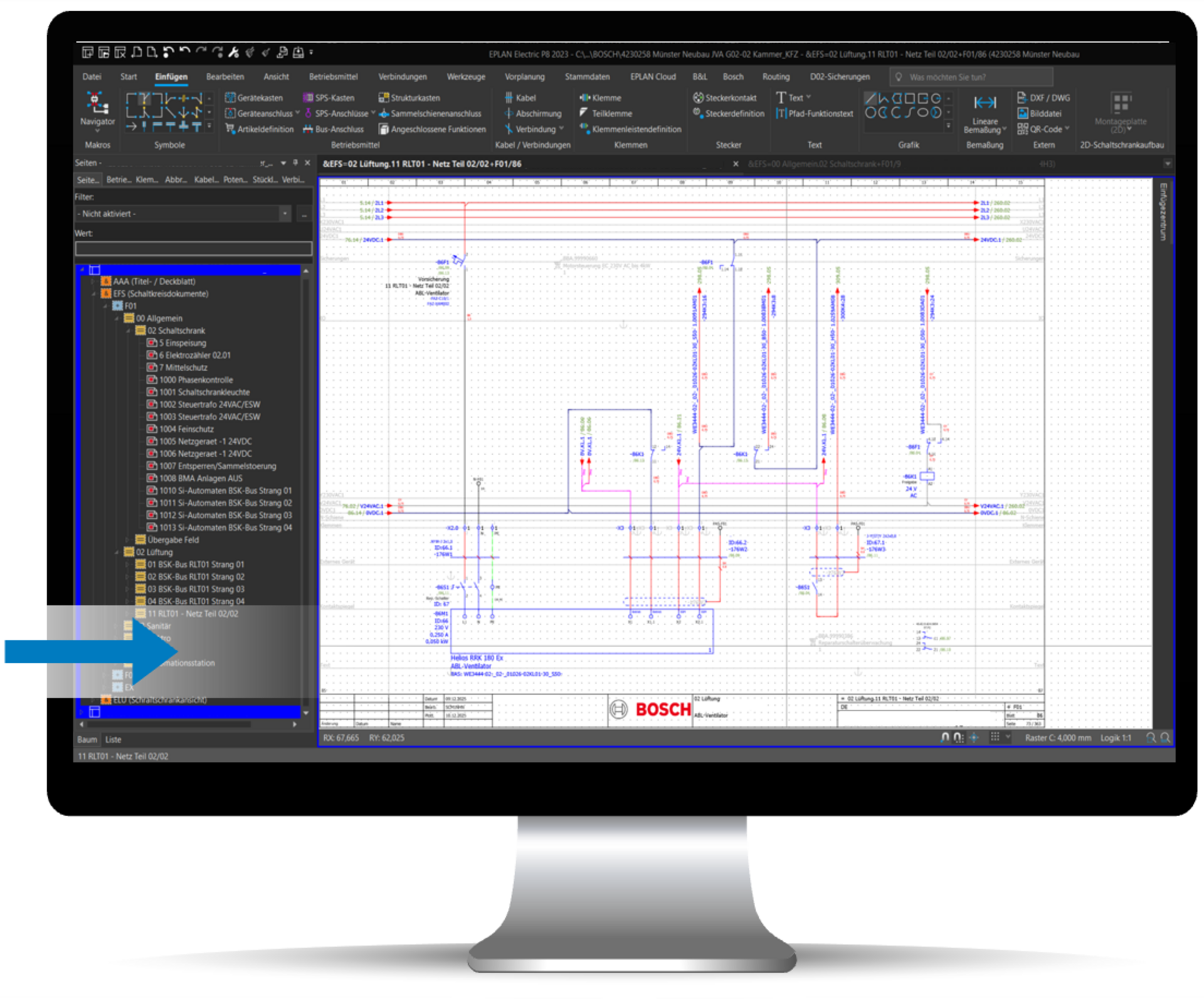 Aus dem digitalen GA-Zwilling werden die relevanten Daten in das ECAD-Elektro-Engineering übergeben. Der Workflow generiert auf Basis definierter Betriebsmittel- und Anlagenmakros sowie Gerätebibliotheken der Stromlaufplan und eine detaillierte Dokumentation der verwendeten Komponenten – automatisiert und revisionssicher.